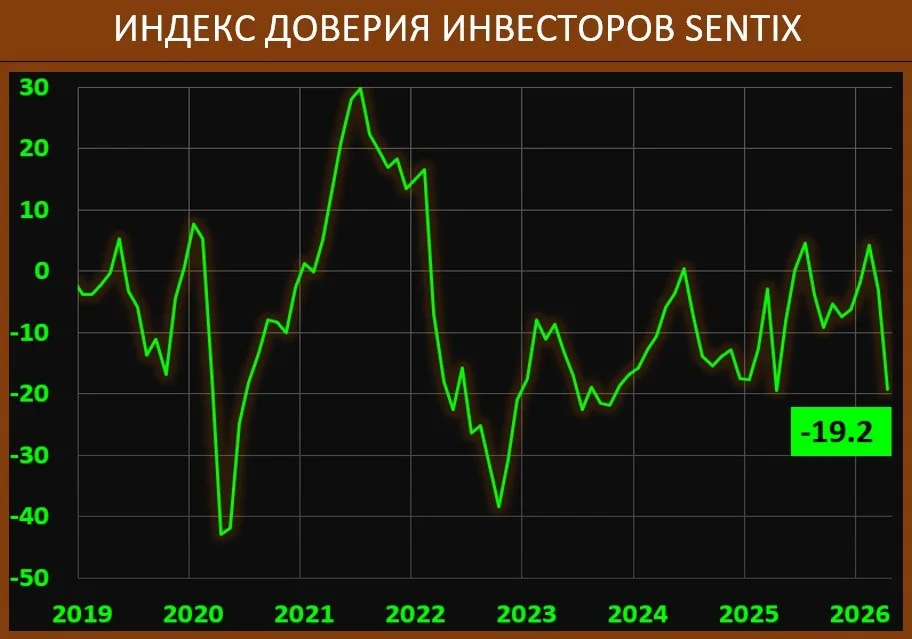 Индекс Sentix рухнул до -19.2: доверие инвесторов в ЕС обвалилось в апреле 2026 года