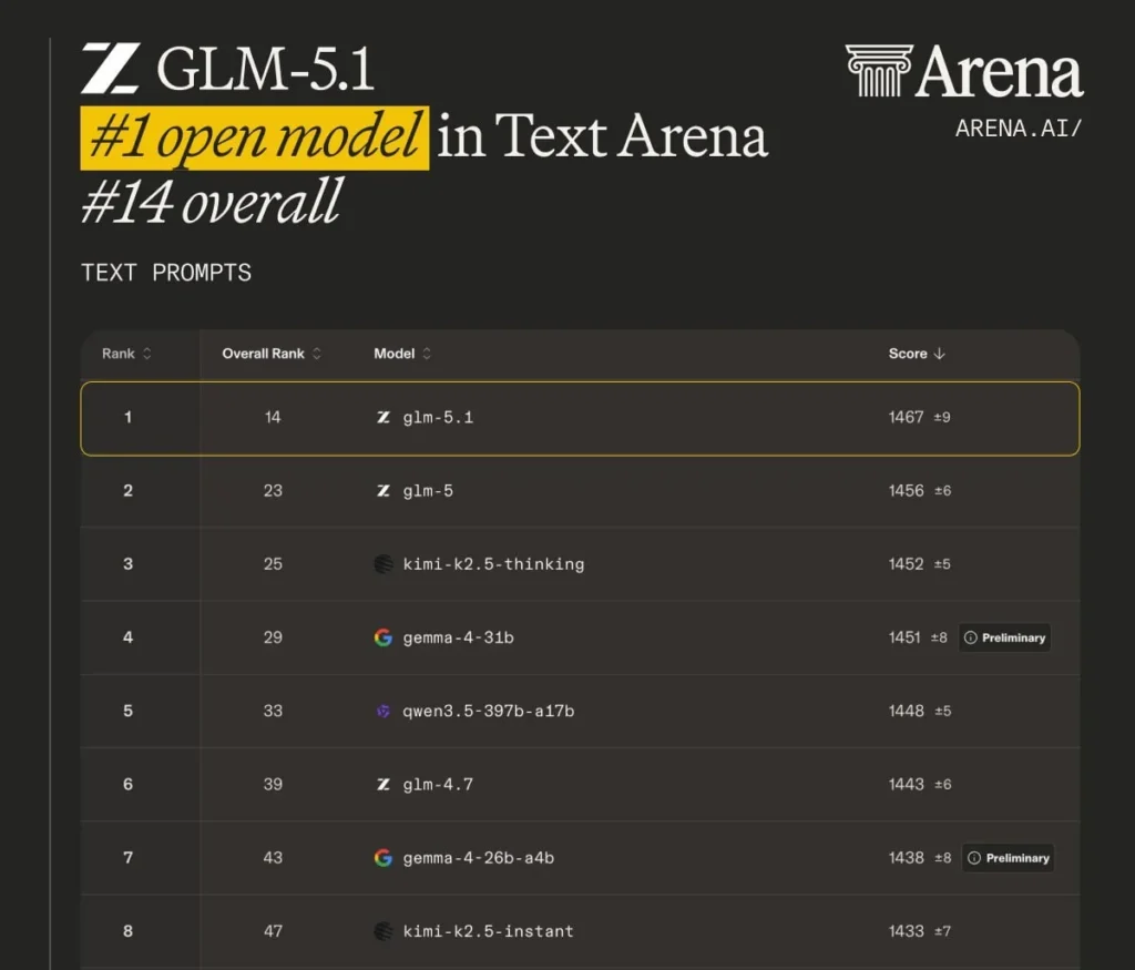 Китайская модель GLM-5.1 от DeepSeek стала лидером среди опенсорсных решений по ключевым бенчмаркам. Новая версия выполняет до 1700 шагов, работает автономно 8 часов и превосходит предшественника на 11 пунктов.