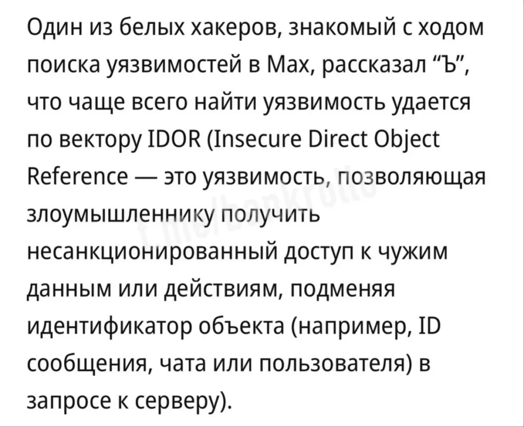 Исследователи выявили в мессенджере MAX свыше 200 уязвимостей, большинство из которых связаны с небезопасным прямым обращением к объектам (IDOR). Это позволяет злоумышленникам получать доступ к чужим фотографиям, сообщен