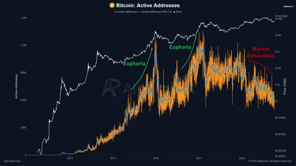 У Ethereum зафиксирован редкий ончейн-сигнал: активные адреса бьют рекорды при падении цены