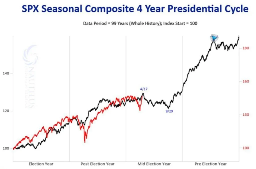 SP500 приближается к максимуму по сезонности президентского цикла